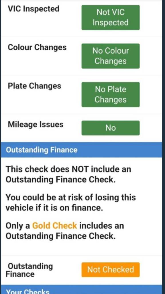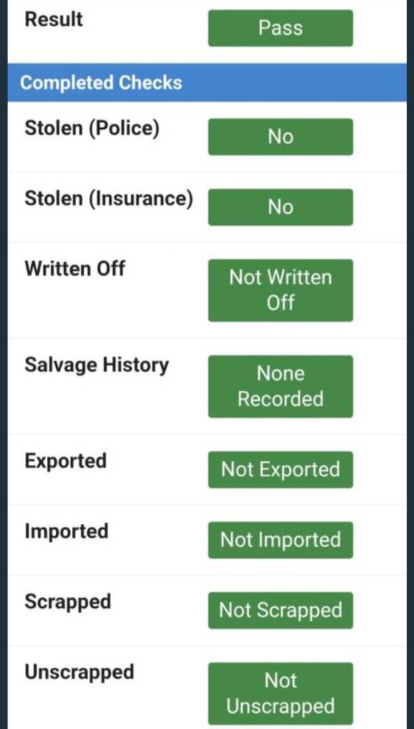 This vehicle has not been reported stolen, scrapped, exported or flagged as unroadworthy.