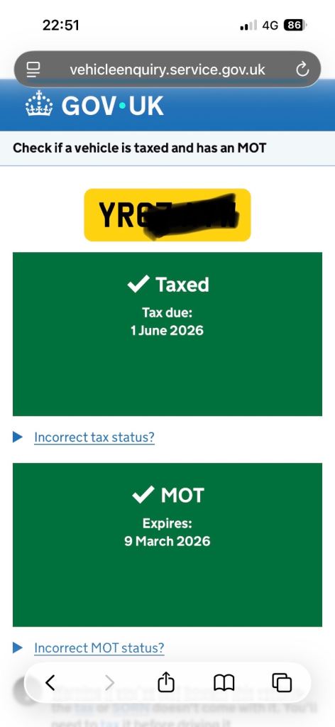 This vehicle has not been reported stolen, scrapped, exported or flagged as unroadworthy.