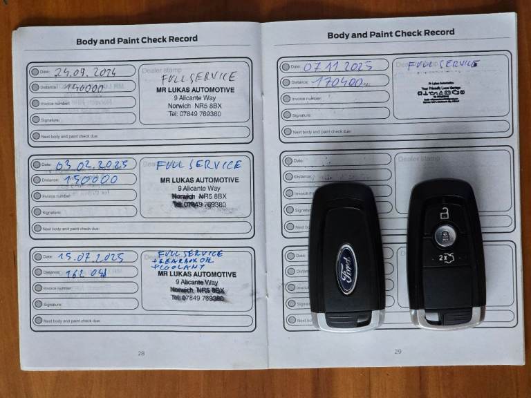 Driver and passenger + front and rear side + head airbags, Rear child locks, Drivers knee airbag, Tyre pressure monitoring system, Thatcham Category 1 alarm + Immobiliser, Keyless Entry, Remote control central double deadlocking, ABS - Anti-lock Brake System, Electronic Brakeforce Distribution, ESP - Electronic Stability Programme, Traction Control, Electric heated folding door mirrors, Rain sensor windscreen wipers, Electric windows + one touch, Auto activated headlights, 2 individual fold flat 3rd row seats+ 3 individual fold flat 2nd row seats, Lumbar support, Isofix, Armrests, Black leather multifunction steering wheel, 'Ford Power' starter button, Speed limiter, Lane keep assist, Traffic sign recognition, 6 Speed manual gearbox.