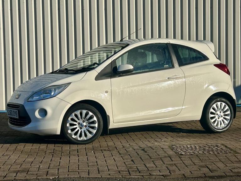 Ford ka Zetec 1.2 petrol 5 speed 68 bhp Covered 60,000 miles 3 former keepers £35 per year road tax Finished in pearl white Heated front screen Air con Electric windows Electric mirrors Alloy wheels Rear spoiler Just been serviced ready to go 6 months gold warranty Extended warranties available Px welcome Nationwide delivery available £1995 [Phone number removed]