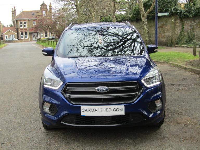 ***ULEZ COMPLIANT VEHICLE***EURO 6 DIESEL ENGINE***HIGHLY SOUGHT AFTER AUTO*** ***2017 (67) FORD KUGA 2.0 DIESEL AUTOMATIC SUV***TOP SPEC ST LINE MODEL PRESENTED IN DEEP IMPACT BLUE***FULLY LOADED*** ***ST LINE BODYKIT, DETAILING & STITCHING***JUST 2 OWNERS FROM BRAND NEW*** ***TOP FEATURES INCLUDE; PARK PILOT (AUTOMATIC PARALLEL PARK), SAT NAV, DAB RADIO, BLUETOOTH CONNECTIONS, 8"" MULTI FUNCTION TOUCHSCREEN, FRONT & REAR PARKING SENSORS, PART LEATHER INTERIOR, ALL ELECTRIC WINDOWS WITH GLOBAL OPEN/CLOSE FUNCTION, ALLOY WHEELS, FORD SYNC, VOICE CONTROL, ELECTRONIC HANDBRAKE, CRUISE CONTROL WITH LIMITER, DUAL ZONE CLIMATE CONTROL, MULTI FUNCTION STEERING WHEEL, AUTO LIGHTS & WIPERS, REAR PRIVACY GLASS, ISOFIX FITTINGS, POWER FOLD MIRRORS, HEATED FRONT SCREEN, LED DAY RUNNERS, FRONT FOG LIGHTS, KEYLESS START AND SO MUCH MORE*** ***COMPREHENSIVE SERVICE HISTORY INCLUDING ROUTINE CAMBELT CHANGE IN 2025***CURRENT MOT VALID UNTIL SEPTEMBER - NEW MOT CAN BE ARRANGED*** ***RAC NATIONWIDE PARTS & LABOUR WARRANTY & COMPLIMENTRY ROADSIDE ASSISTANCE FOR COMPLETE PIECE OF MIND, GEARBOX OIL & FILTER CHANGE AND A FULL SERVICE FOR 2026 INCLUDED AT £9495*** ***HPI CLEAR***PART EXCHANGE WELCOME*** ***FINANCE AVAILABLE INCLUDING POOR AND BAD CREDIT*** ***OVER 35 VEHICLES AVAILABLE WITH ACCESS TO OVER 1000+ VEHICLES*** ***VIEWING BY APPOINTMENT ONLY***FREE LOCAL DELIVERY AVAILABLE***NATIONAL DELIVERY CAN BE ARRANGED AT FURTHER COST*** ***FRIENDLY FAMILY RUN BUSINESS***PLEASE CALL RUPERT 0 [Phone number removed] - KIRSTY 0 [Phone number removed]