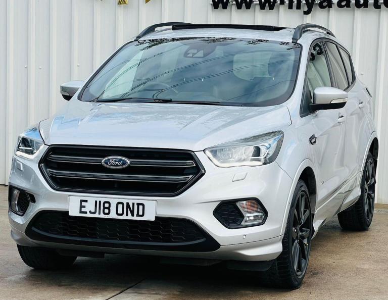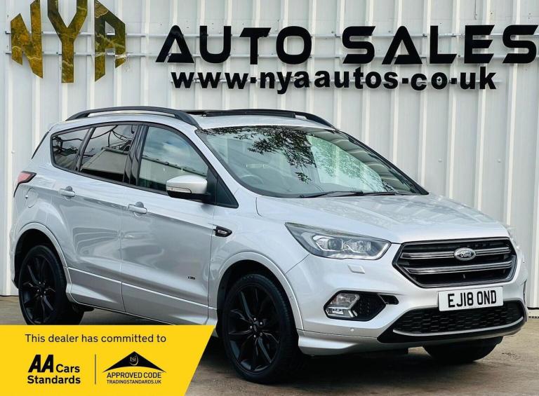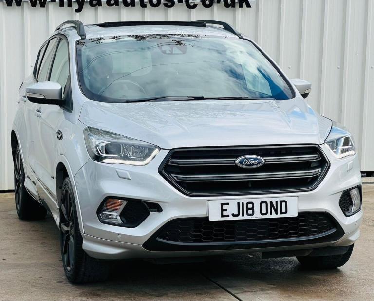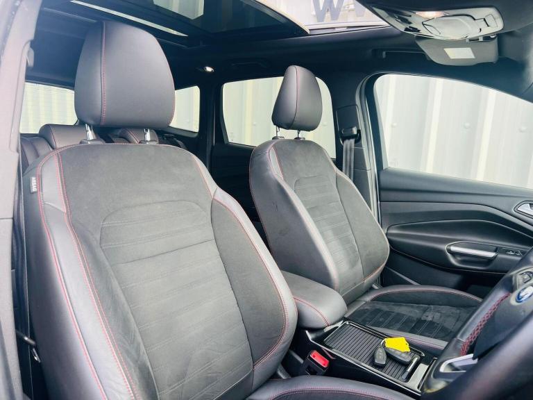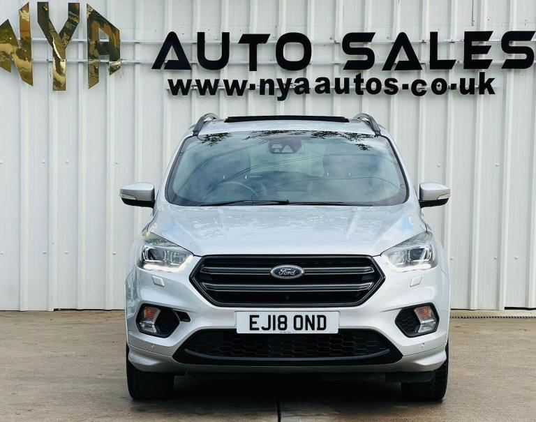 This Ford Kuga ST-Line X is an absolutely immaculate example, in excellent condition throughout and very well maintained, with no dents, scratches, or marks the bodywork is flawless. It comes with a full service history, has been recently fully serviced, and includes a long MOT valid until October 2026, providing complete peace of mind. Finished in a stunning colour, this ST-Line X full package model combines style, comfort, and performance perfectly. It features ST-Line alloy wheels and sport styling enhancements for a striking road presence. As the top-of-the-range ST-Line X model, it's packed with high-end features such as a panoramic roof, full leather and suede interior, electric memory seats, heated front seats, ambient interior lighting, reversing camera, Park Assist, power tailgate, and an advanced infotainment system with satellite navigation offering an exceptional driving experience. Powered by the robust and efficient 2.0 TDCi Euro 6 engine, paired with the smooth Powershift automatic gearbox and All-Wheel Drive system, this Kuga delivers strong performance, reliability, and comfort on every journey. The vehicle comes with two keys, three months free warranty, and 12 months free AA breakdown cover for added reassurance. We are a five-star rated dealership, known for our quality vehicles and outstanding customer service. Please do not hesitate to contact us for more details or to arrange a viewing this Kuga ST-Line X truly is a superb example that must be seen to be appreciated.