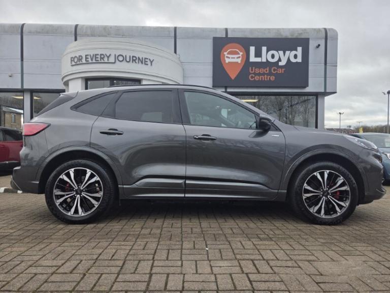Conveniently located less than a mile from junction 44 off the M6 Lloyd Used Car Centre Carlisle are delighted to offer this Ford Kuga 2.5 PHEV ST-Line X Edition first registered on 07-02-2023 and comes complete with an up-to-date Service, MOT and our market leading 12-month nationwide warranty and breakdown ensuring complete peace of mind. Finished in gleaming metallic Grey paintwork complimented with 19 inch diamond cut alloy wheels and privacy glass. This comes with a range of great features the interior is adorned with a black part leather upholstery, and front and rear heated seats making those frosty mornings a pleasure. The touchscreen infotainment system with integrated phone connectivity providing hands-free operation of compatible devices, integrated satellite navigation, and reverse camera and parking sensors allowing you to park with precision in narrow spaces. This stylish SUV comes with cruise control, and dual zone climate control making those long journeys a comfortable and enjoyable experience. Lloyd Used Car Centre are extremely proud to offer what we believe are the very best quality and selection of used vehicles in the local area, our vehicles are carefully selected by our sales manager Richard who has over 30 years experience in the motor industry giving him the insight to select the very best vehicles from our colleagues within the multi award winning family-owned Lloyd Motor Group, one of the UKs leading independent vehicle retailers