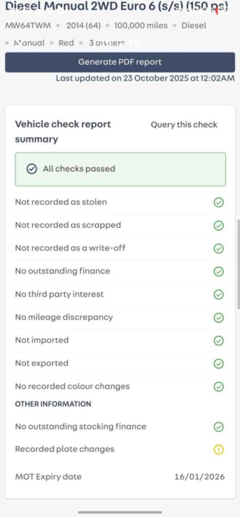 Buy the full report for guaranteed data accuracy, outstanding finance, valuation, milage check & VIN match for £9.99 (normally £19.99)