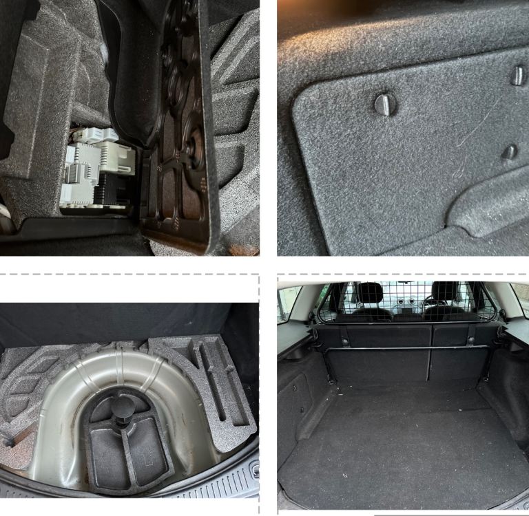 The boot space is very large (about 542 litres with the seats up and about 1733 litres with the seats down), and there is a boot mat and tie down hooks and under the mat, a new spare wheel and Jack etc. is provided) and a towing eye is present which can be fitted to the front or back of the car (it fits behind a blanking plate on either the front or back bumper that as far as I know, have never been removed and the towing eye has never been fitted).