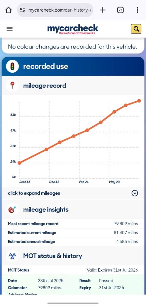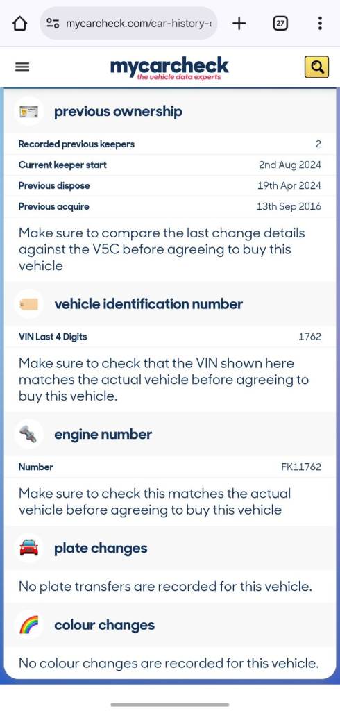 Our vehicle history check is provided for guidance only. Please check all the details with the seller before purchasing
