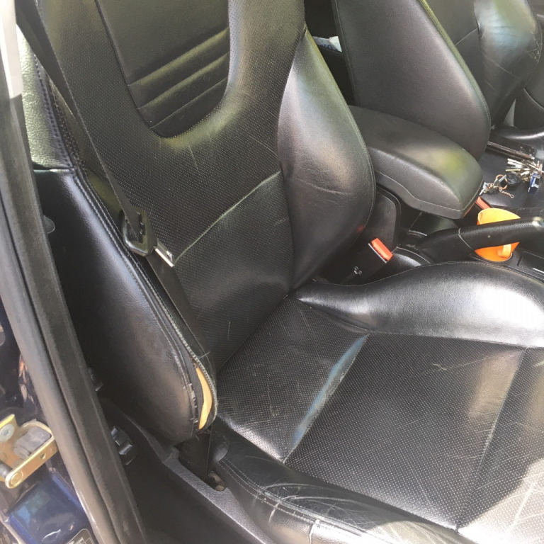 Black Recaro leather interior, drivers seat has opened up and worn but can be stitched together