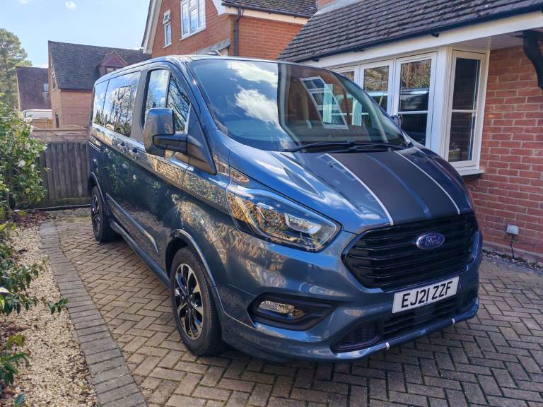 2021 Ford Tourneo Custom Sport. 8 Seater, Manual, 185BHP, Diesel, L1 320 Ecoblue 2.0L, Metallic Blue, Black half-leather interior, FSH, 2 Keys, Dual Climate Control, SatNav, Bluetooth Audio/Android Auto etc, F & R parking sensors, Reversing camera, "Blindspot assist" heated & auto-folding door mirrors, Individually removable and rotatable seats to 2nd & 3rd row, Powered & Heated Driver & Passenger seats, Rotating front passenger "Captain seat", 230v power 3-pin socket, 12v power & USB points. 47,300 miles. £26,000 ovno. No VAT. Great family or beach/day vehicle in very good condition. Only selling due to change in work vehicle arrangements, any questions please ask.
