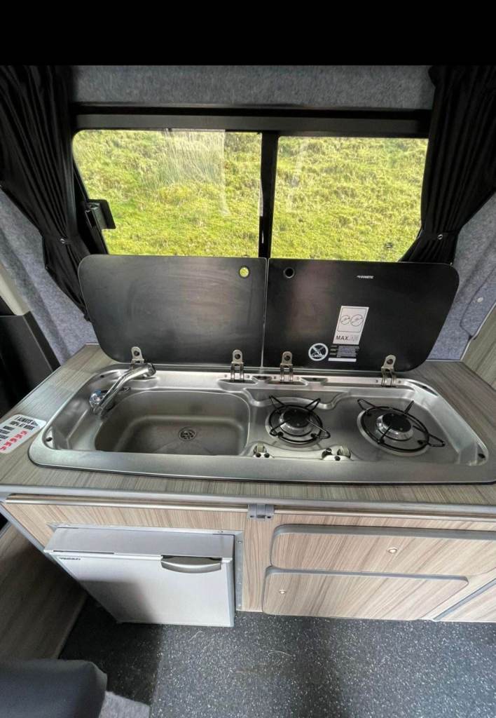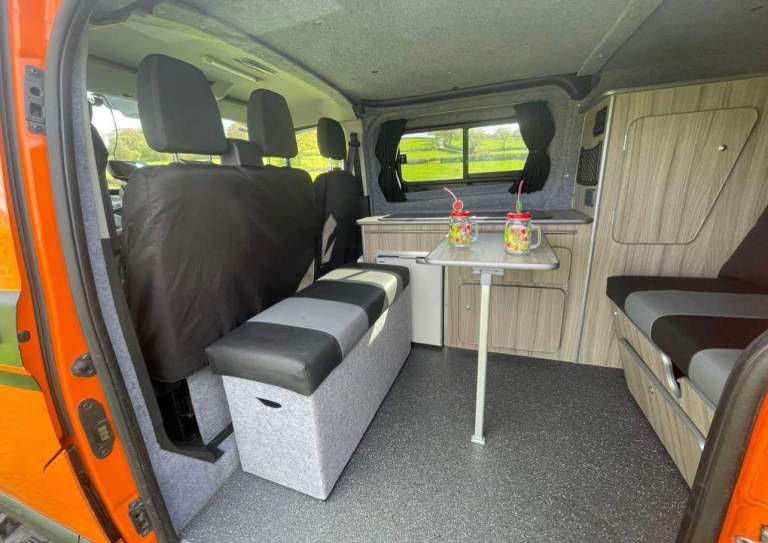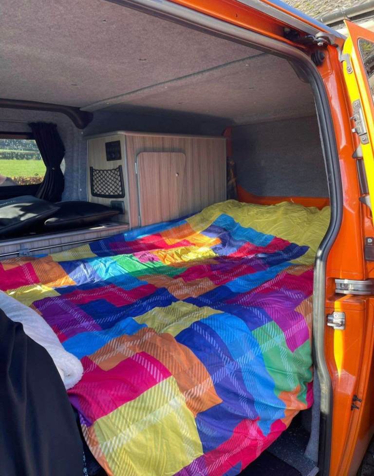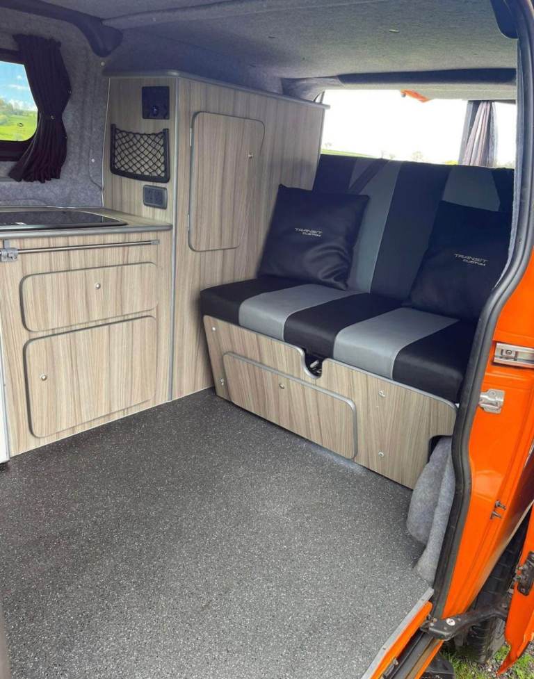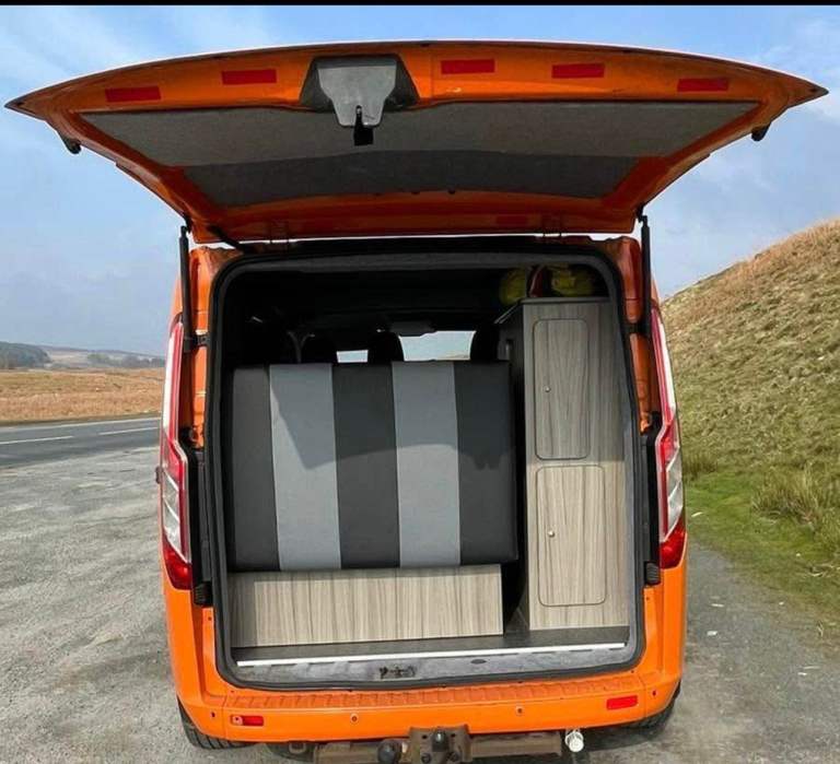 Ford Transit Custom Camper/DayVan! SWB 5 belted seats. Ready for your next adventure? Spacious interior & storage Cozy sleeping area for 2 people- Fully equipped kitchenette for on-the-go meals (Gas bottle connection) (tap for running water)- Reliable Ford Transit engine for smooth travels- Stylish orange and black exterior that turns heads wherever you go ! Rock and roll bed - Internal power plug sockets Perfect for weekend getaways- Cross-Outdoor enthusiasts- Nomadic lifestyles Whether you're chasing sunsets or exploring hidden gems, this camper van is your ticket to freedom. Don't miss out on making memories that will last a lifetime. Don't hesitate to contact me for more details thank you for looking