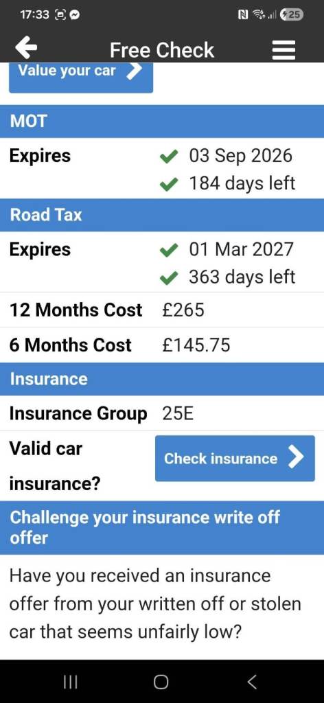 Our vehicle history check is provided for guidance only. Please check all the details with the seller before purchasing