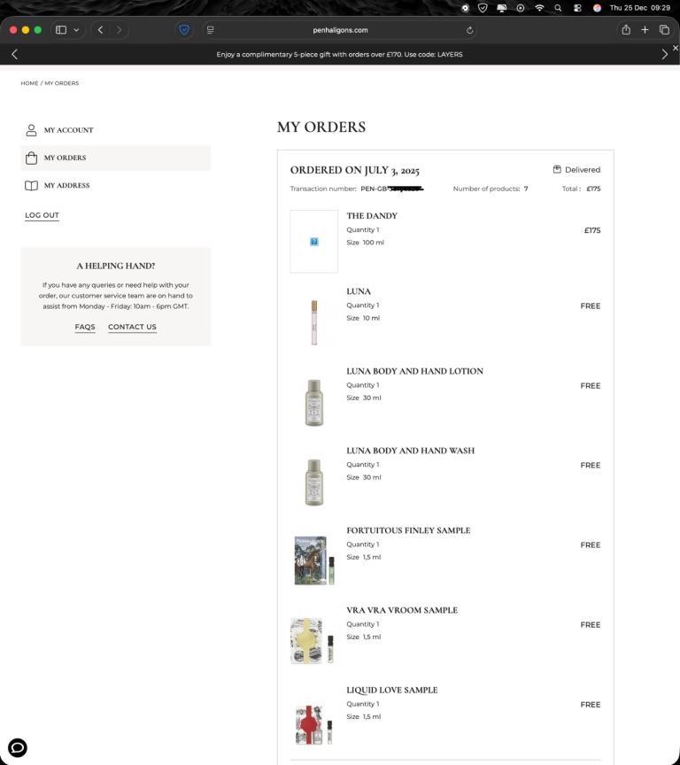 Bought from the Penhaligon’s website back in July but never used due to it being similar to another fragrance I use regularly. The box has been opened and sprayed once.