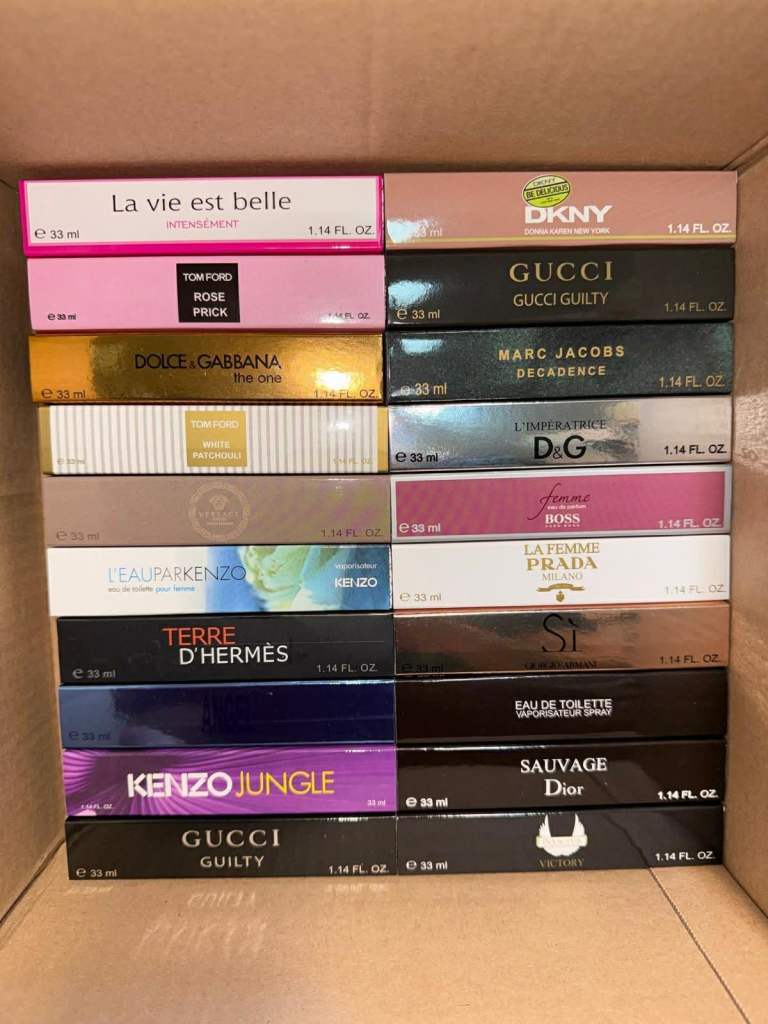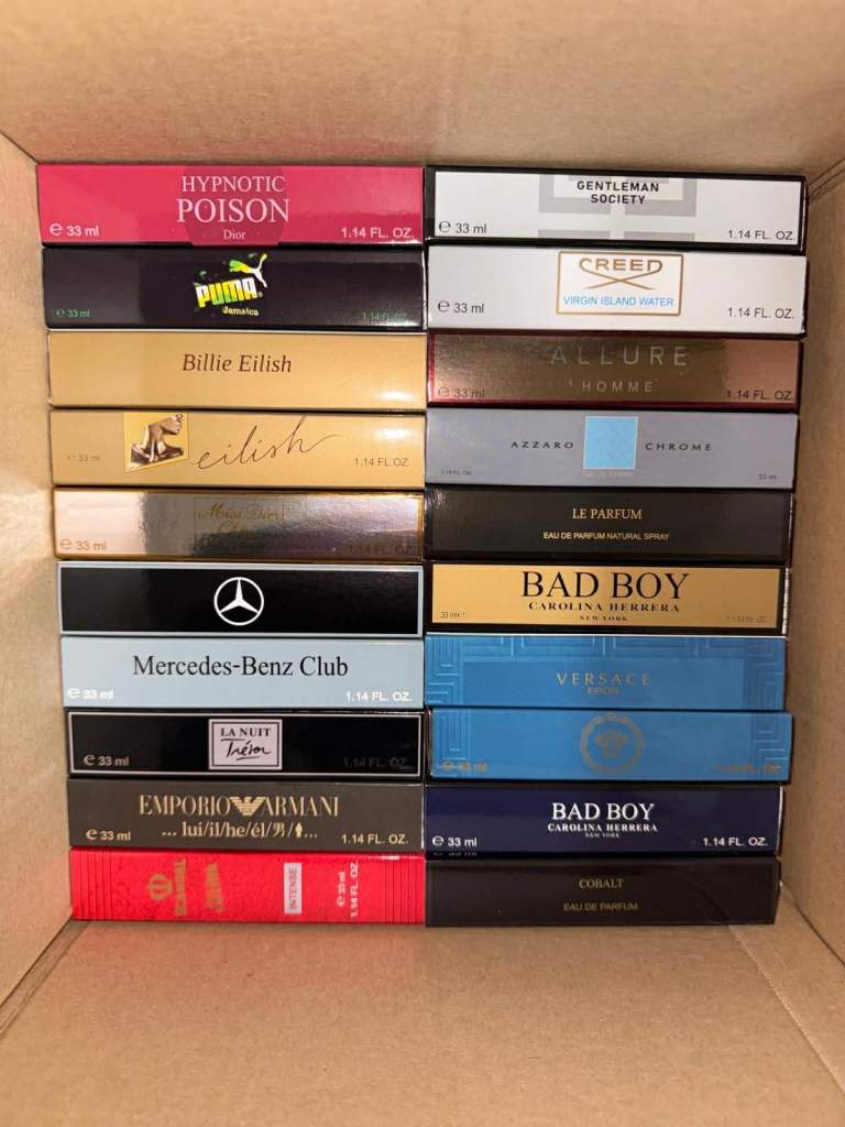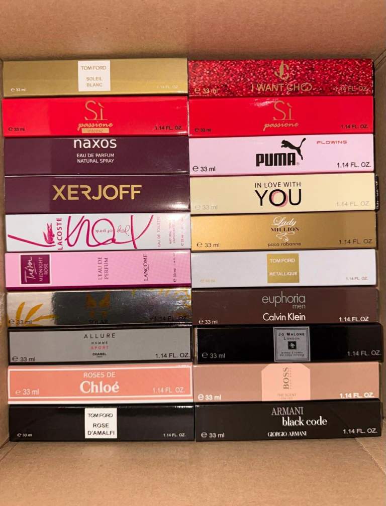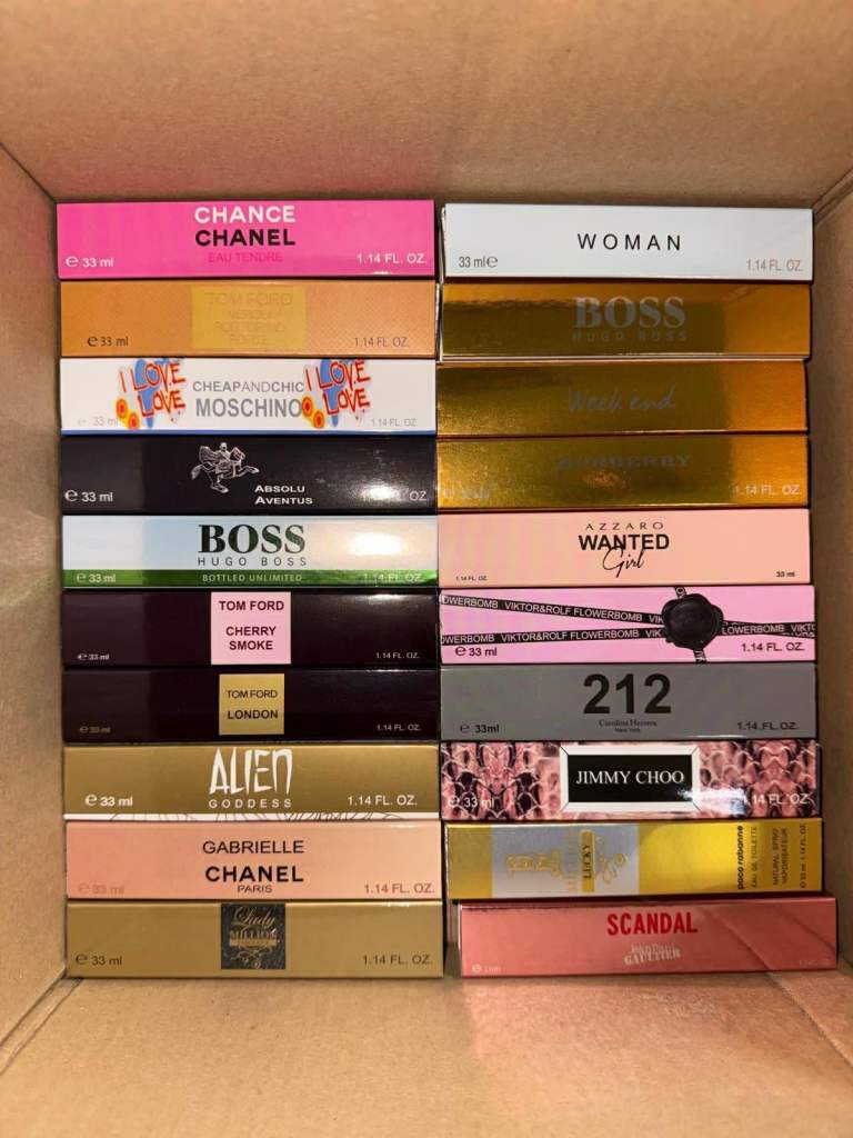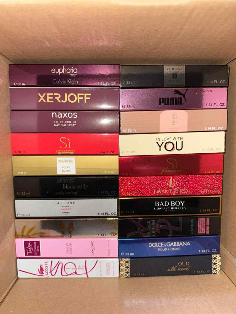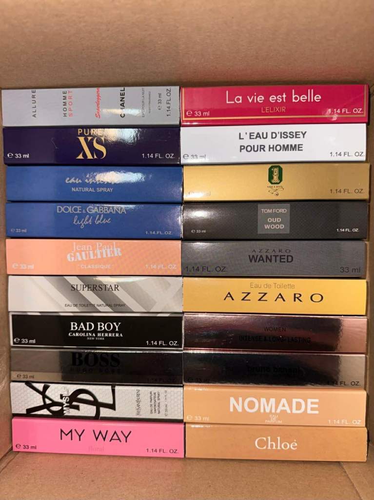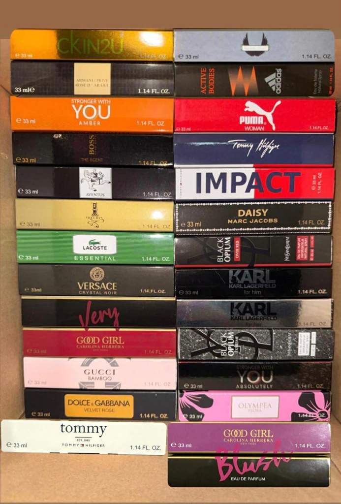 I have over 400 33ml perfume fragrances. If you're interested, send me a message and I'll send you photos of the available perfumes.