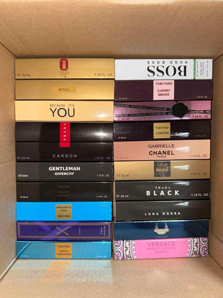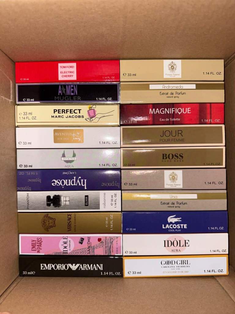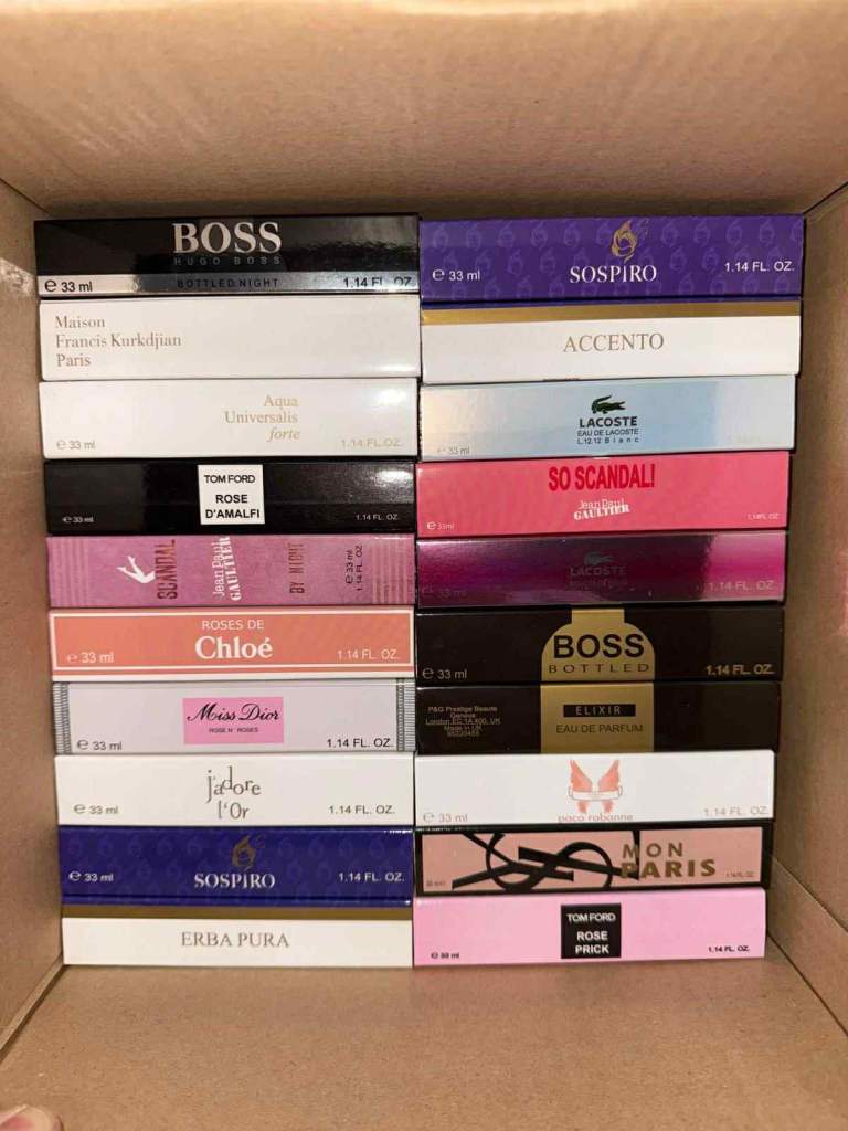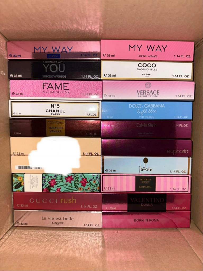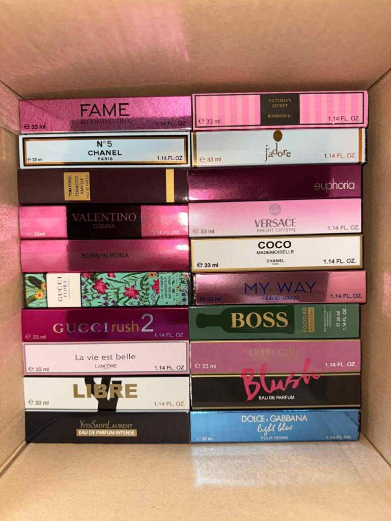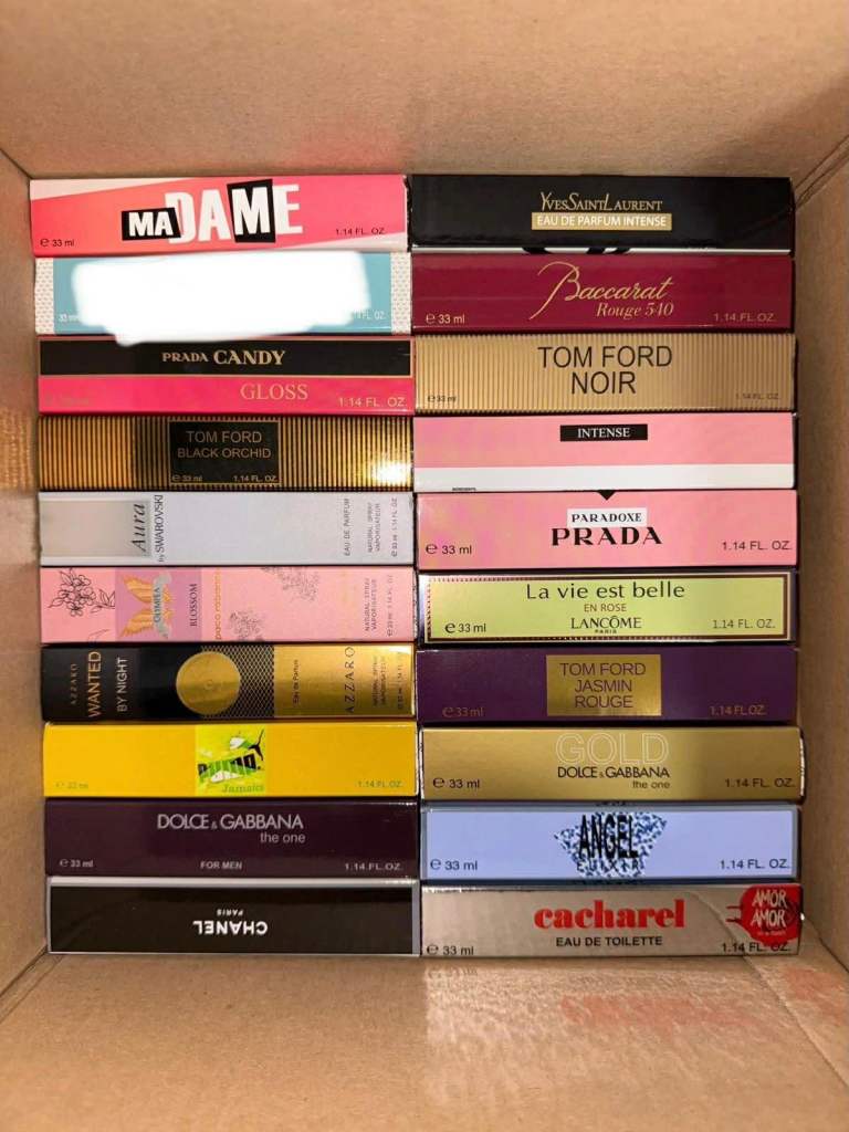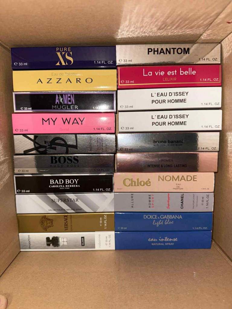 I have over 400 33ml perfume fragrances. If you're interested, send me a message and I'll send you photos of the available perfumes.