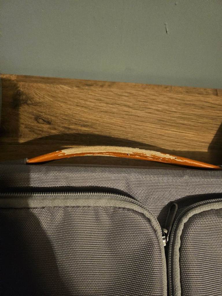 The top handle is damaged and the coating has peeled away, the rest of the bag is undamaged
