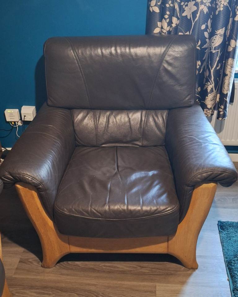 Posting for 4+ months3 piece leather and oak sofa suite.