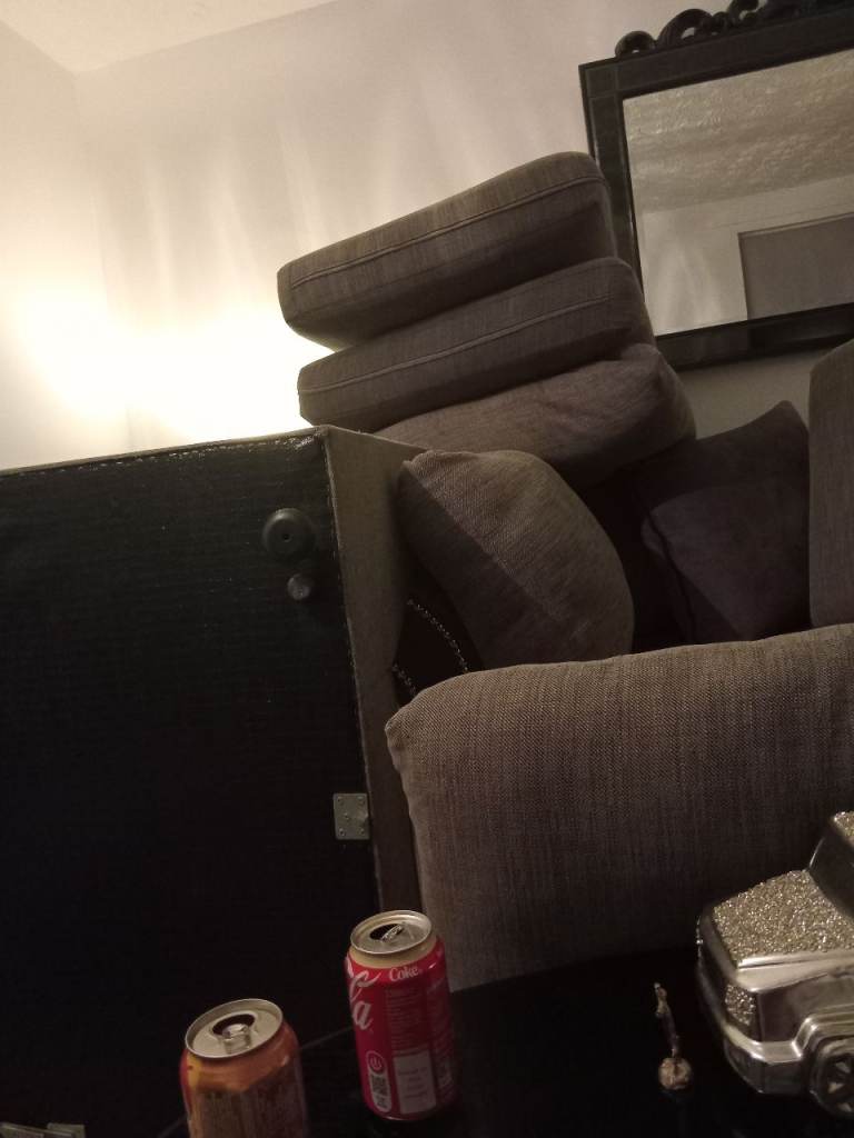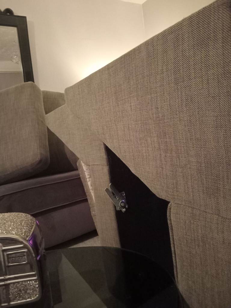 3 seater sofa in grey l shaped few scratch pulls on arm. Very comfy.