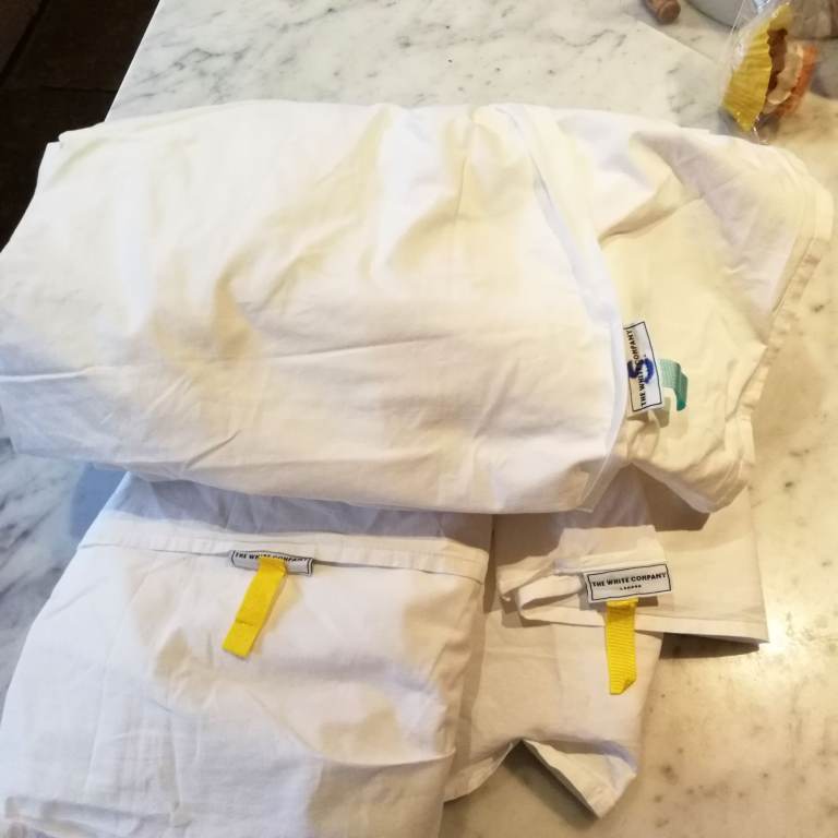 Freshly laundered and in v.good condition.....3 White Company white single fitted sheets.