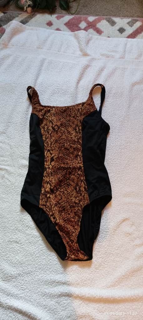 brand new item size 16 label but for a person size 12/14 really as comes up a bit small in a leopard support panel swimsuit - great for a teenager