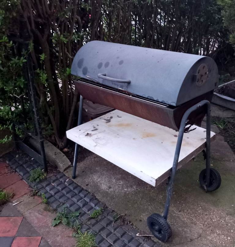 Good size barbecue. Demaged bottom. On 2 wheels, easy to move. Collection from London E17