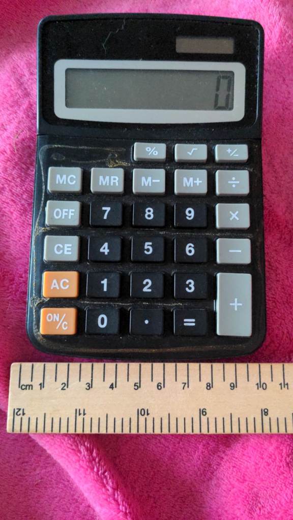15cm x 10.5cm. In good clean working order. Solar powered. Shows a few signs of wear but plenty of life left in it.