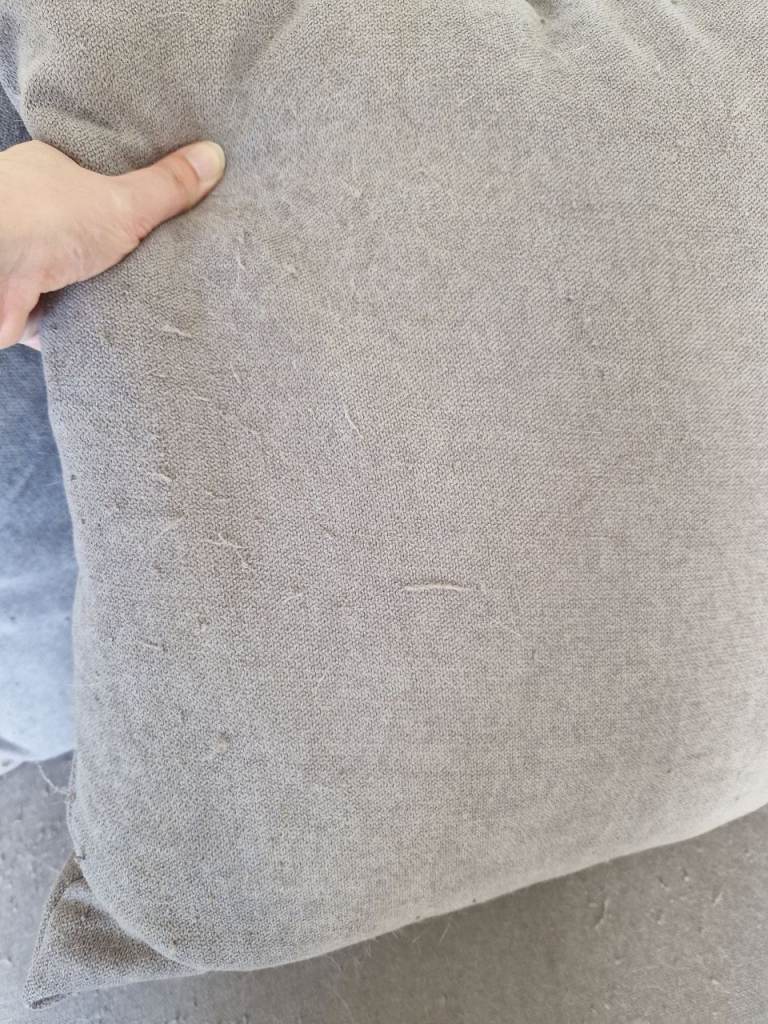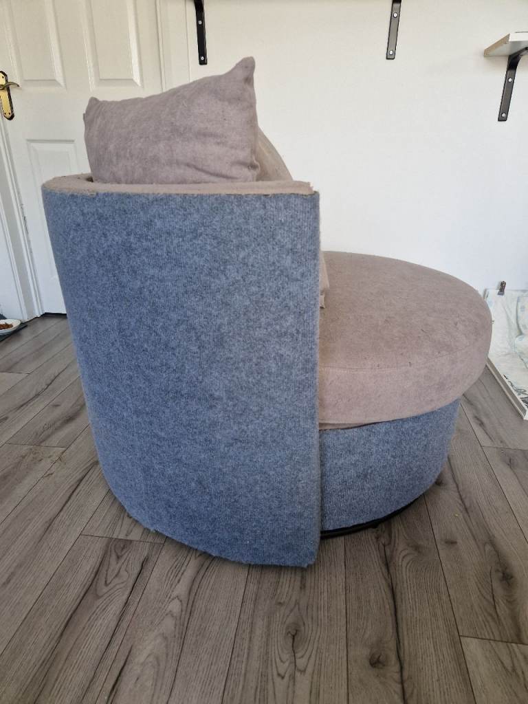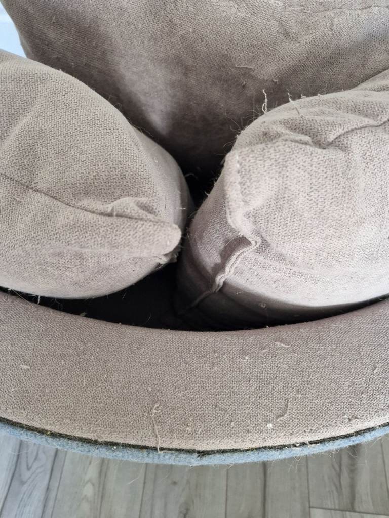 This is a super comfortable, spinner chair. However, it has been plucked excessively by cats. The back, sides and base below the seat have all been covered in a stick-on cat scratcher material. Any area without that blue material, has a lot of plucks.