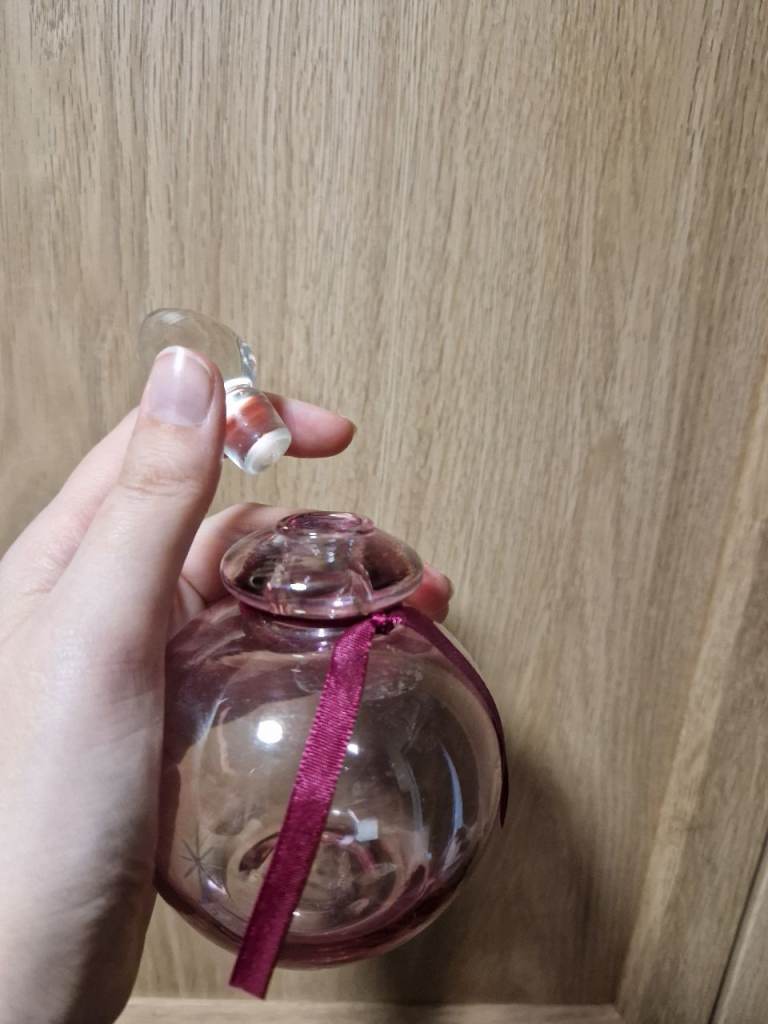 - Decorative round glass perfume bottle (empty)