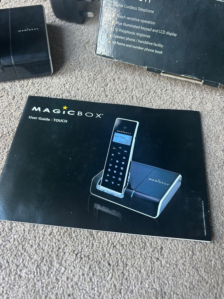 Magicbox Touch digital cordless phone set with box and instructions booklet.
