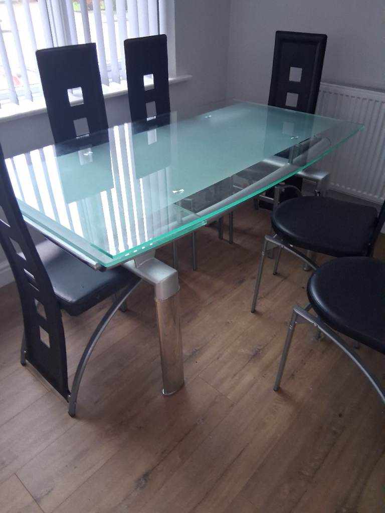 Glass topped table 150 x70cm. Only extends at one end, plus chairs if wanted