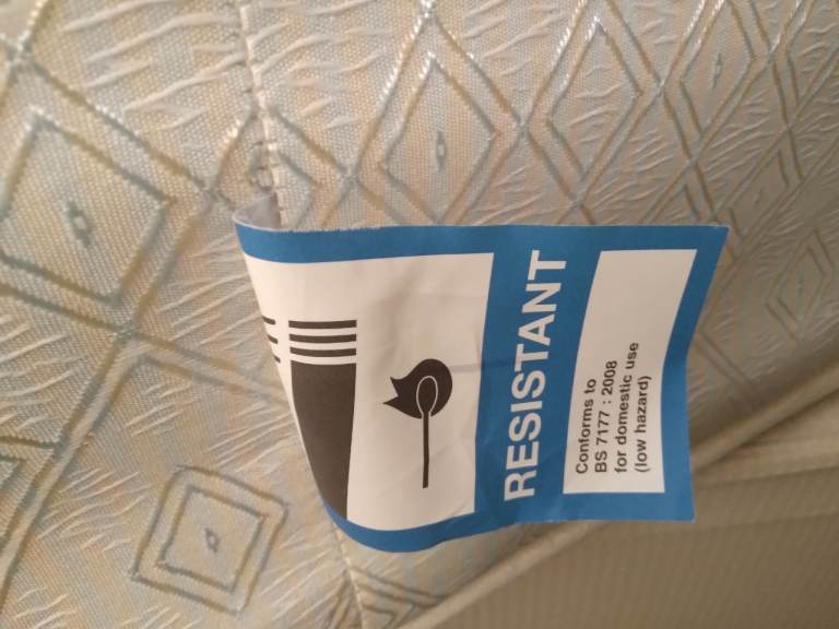 Double mattress with safety labels.