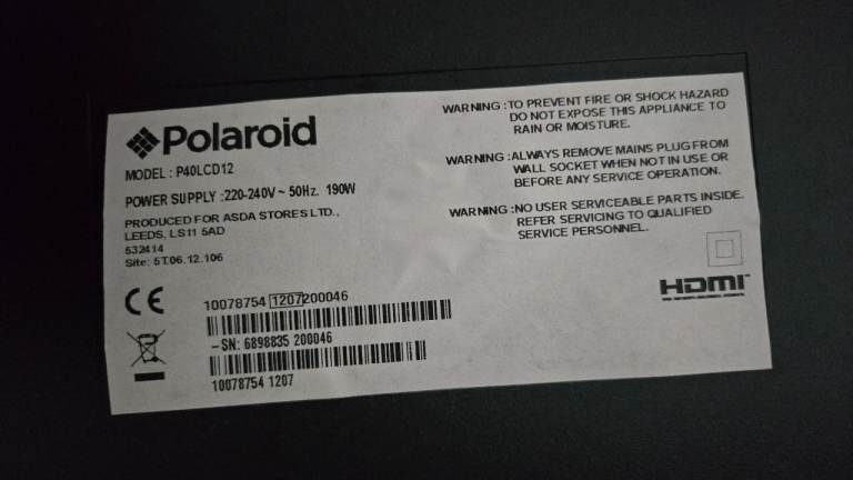 Free 40 inch "Polaroid" TV .