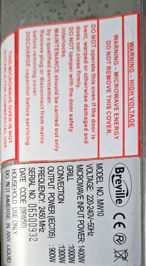 Free breville microwave. Working but the control button has issue. So for repair or spare