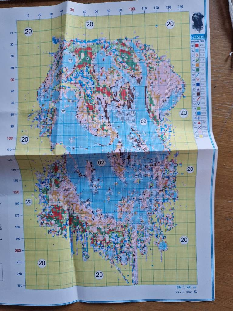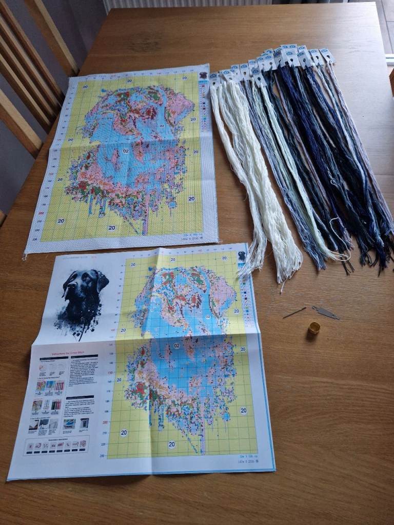 Free cross stitch / tapestry kit. Printed aida image of a black labrador. Once complete soak the fabric and the print will disappear.