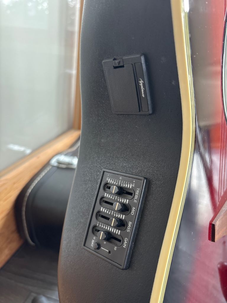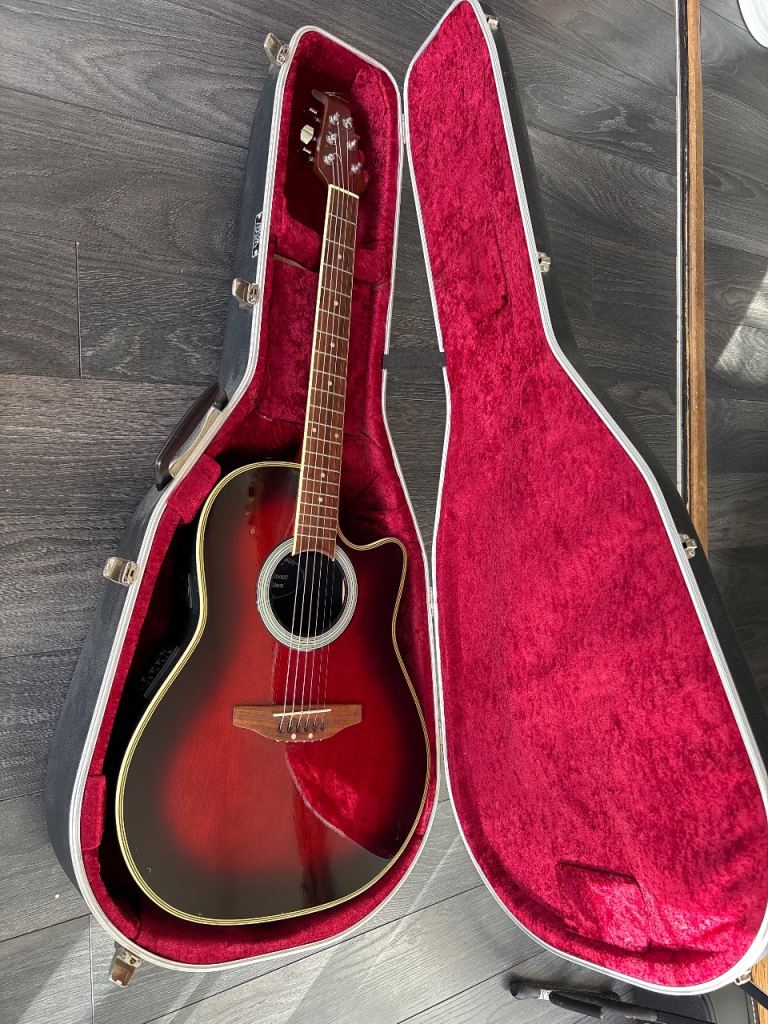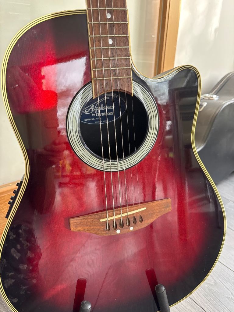 Happy to gift this guitar to a keen novice player or someone making progress in their playing. It is an ‘Applause’ electro /acoustic made by Ovation no AE. 136.