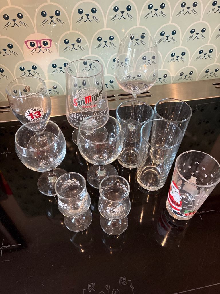 An odd assortment of glasses, some matching some not! Some used, some new.