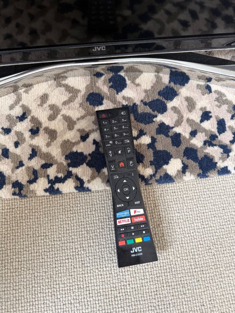 Free JVC smart TV with remote. Fixed chrome stand. Used. Good condition. 53 x 92 cms. Collection in person from Richmond upon Thames TW10