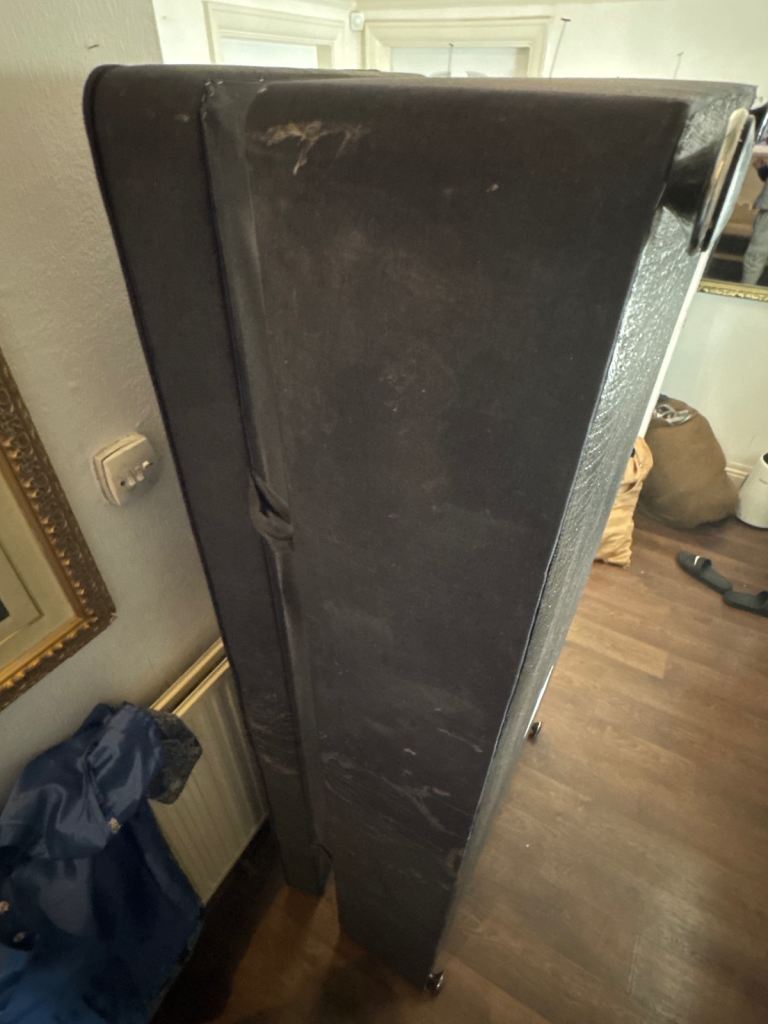 single bed no mattress needs a scrub had to take screws off the spring to bring down the stairs all 4 screws with it