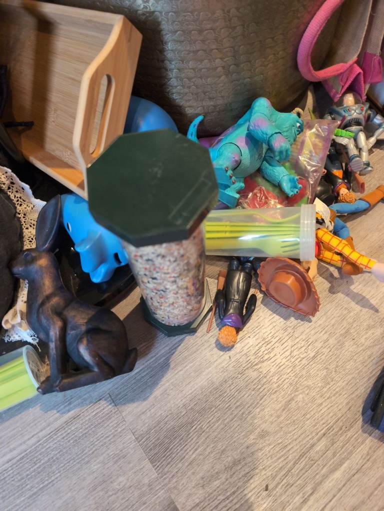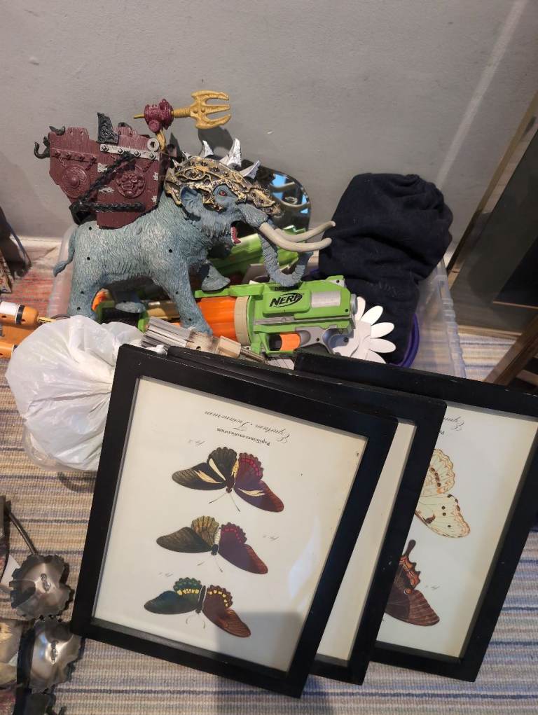 A mixture of stuff from glasses to bowls to children's games and artwork that must be picked up today for free. 12th March. And all must go together.
