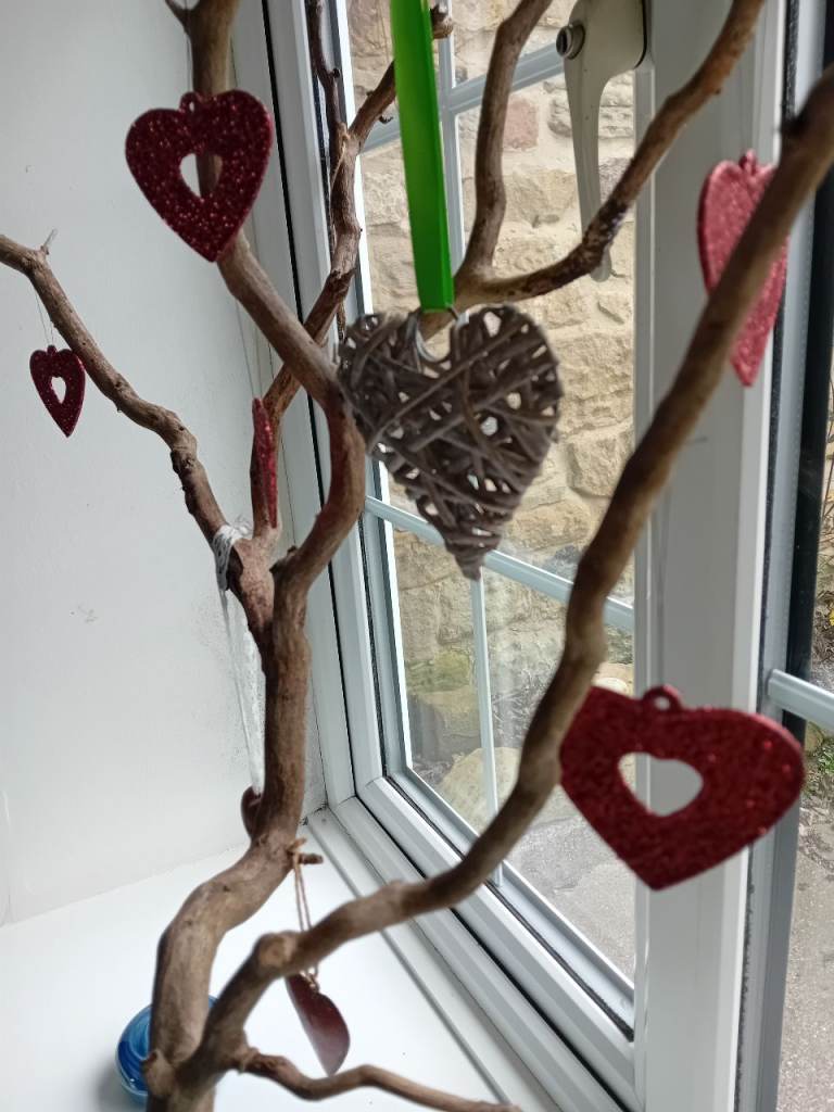 Woven, Metal, Wood and Red Glitter Hearts. Most of them are the red glitter variety but also a nice mix of others. Can use for general decoration or Valentine's Day next year. Will sort out some red ribbons for them as well. Location - Ulgham Grange NE61 3AU.