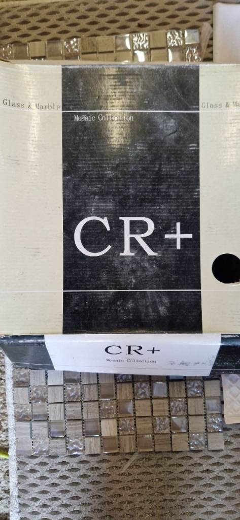 2 no. 300 x 300 mosaic tiles with mosaic mesh backing. Tiles are glass and ceramic. Great as a splashback.