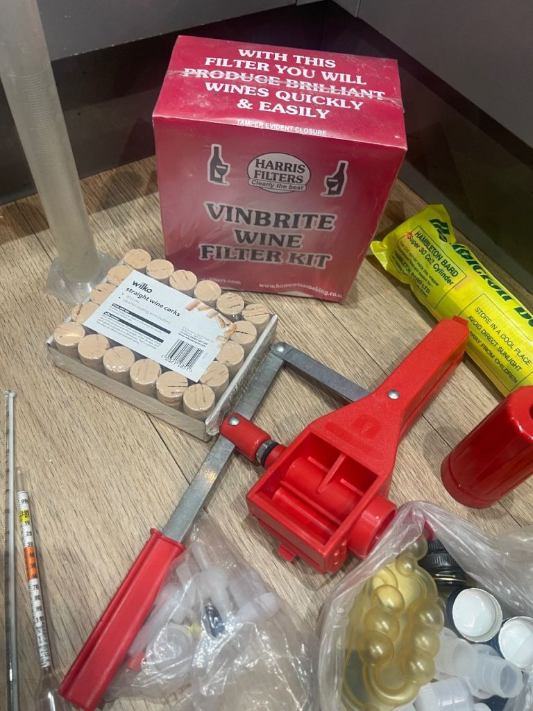 Not sure what most of it is, couple of thermometers, corks and what looks like a thing for putting lids on.