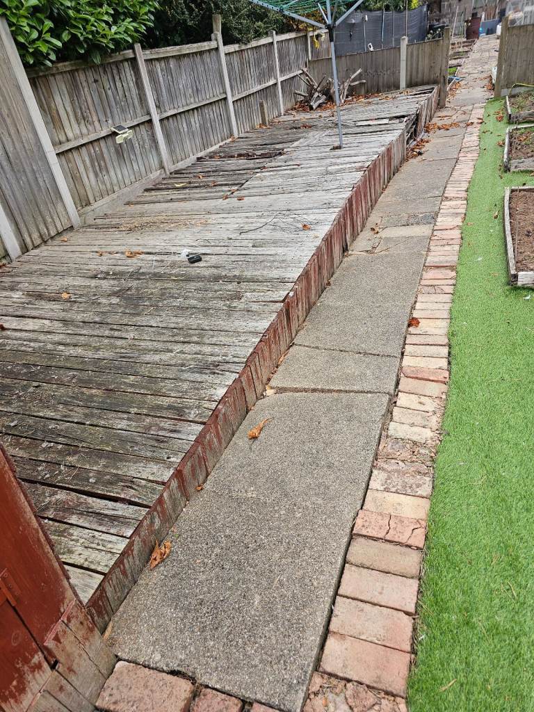 A huge amount of wood to take away. The decking will need dismantled. Have pallets too. Ideal for a wood burner or bonfire.