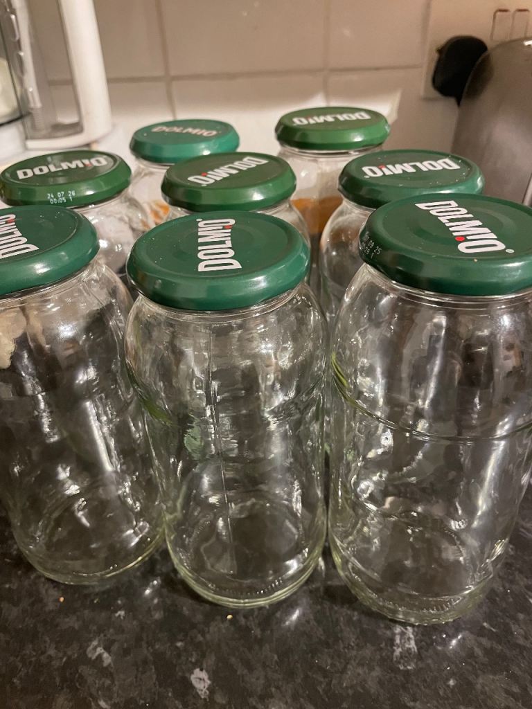 8 glass jars, good for pantry cupboard or any arts n craft