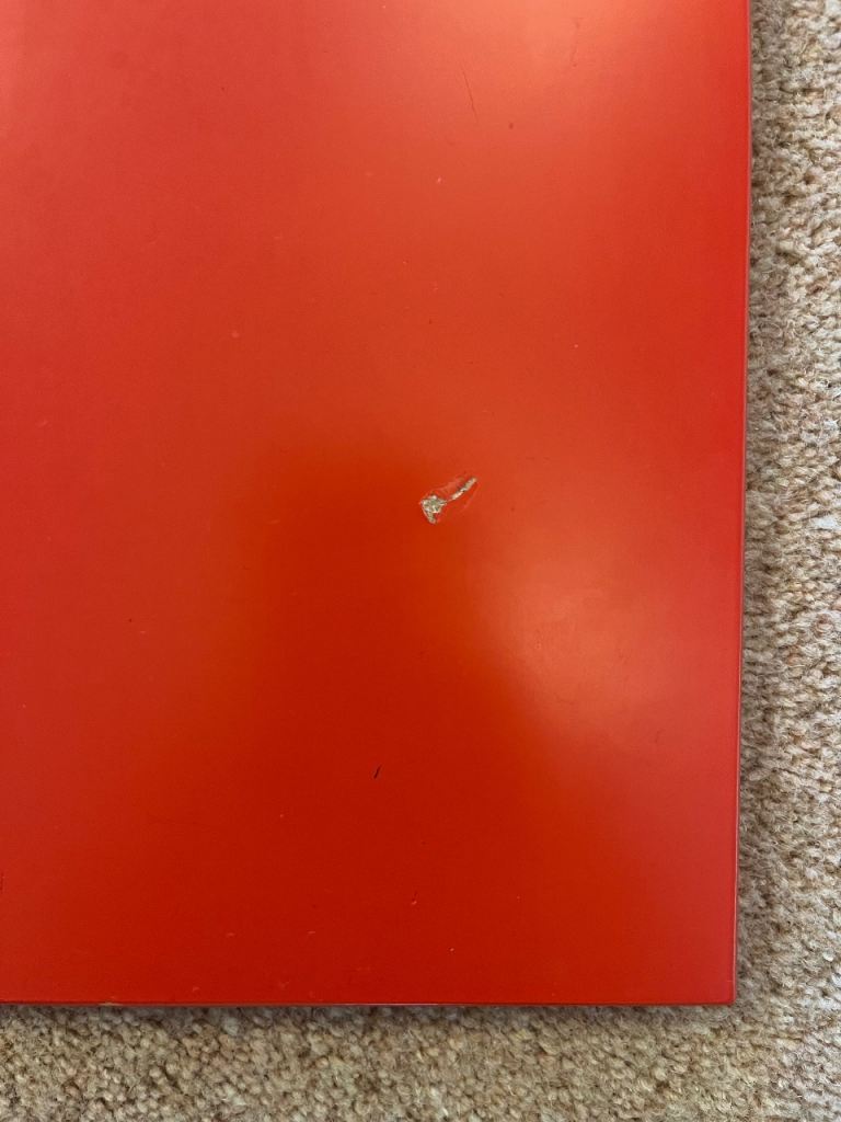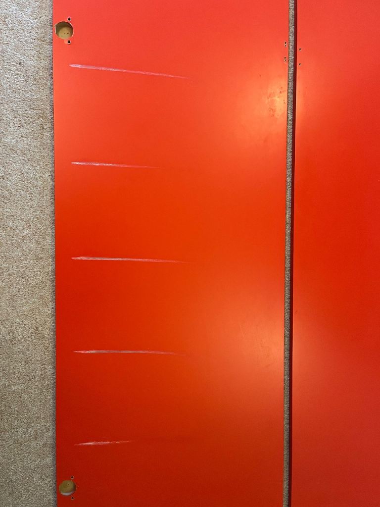 Some scuffs on the insides of the doors made by opening the drawers when the doors weren’t fully open and a couple of small chips on the outside of the one door (please see pics).