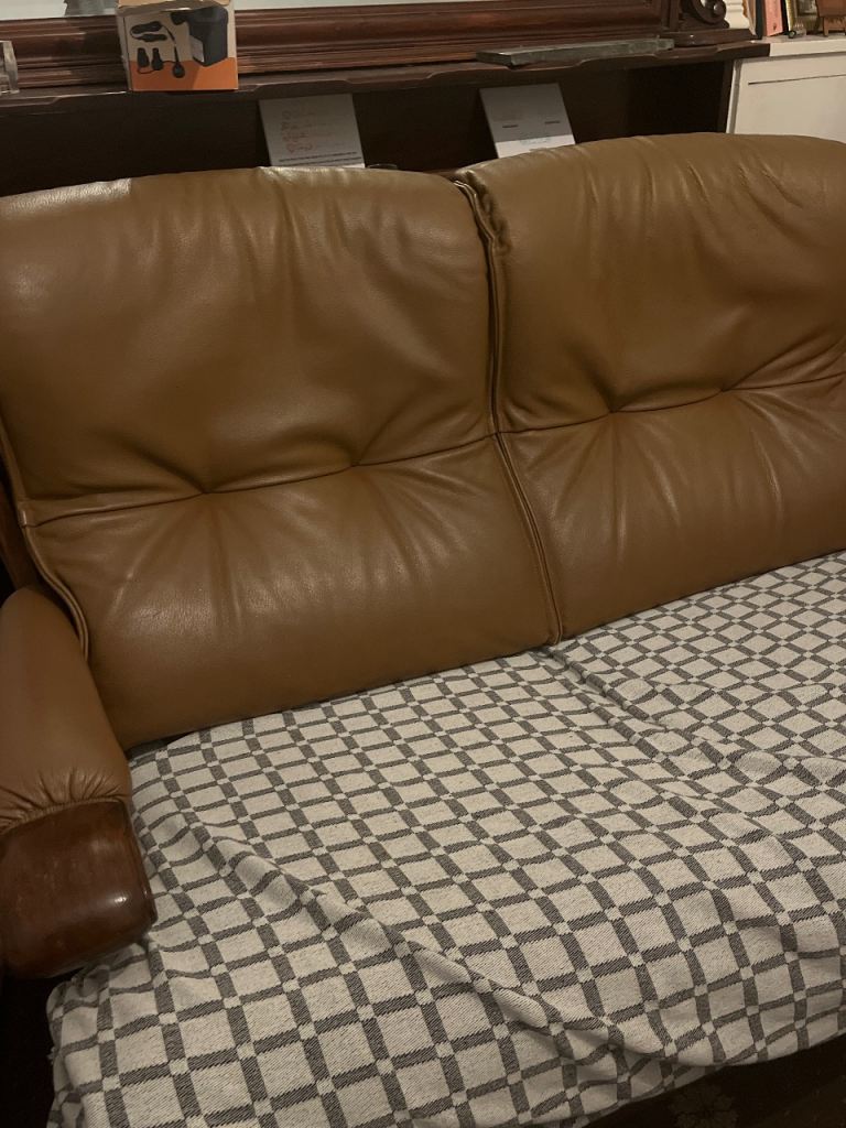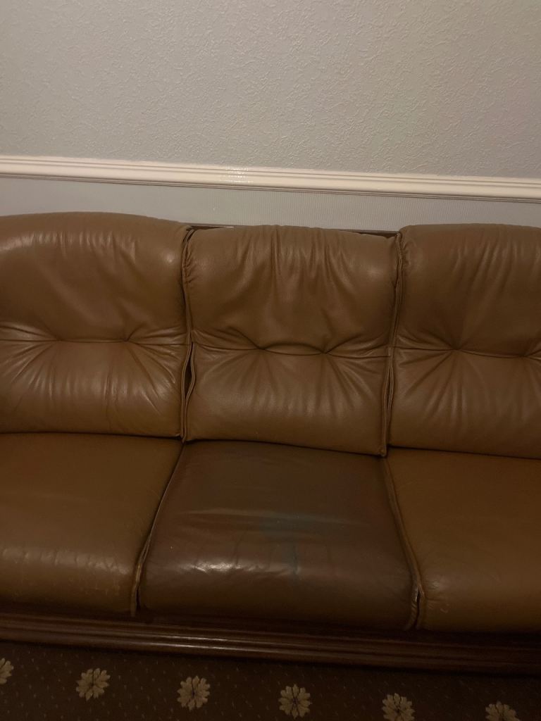3 seater and 2 seater brown leather sofa set with a solid wood frame