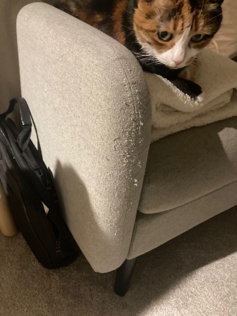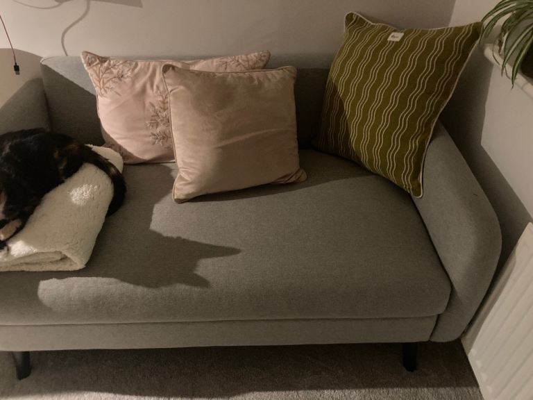 Barely sat on but cats have scratched one corner - shown in pic. You can put a blanket over it though to hide it. It’s from M and S and great for a study or small space 120cm wide it’s free but if you want me to deliver would charge £10. Changing the room so looking for it gone asap