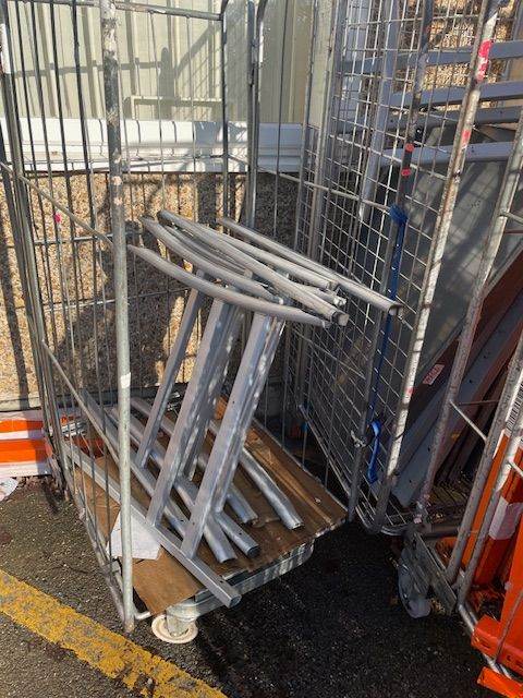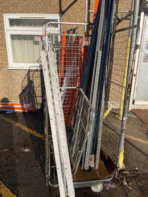 Metals for recycling , uprights and metal trays for shelving . Cut beams for pallet racking . Table legs , etc all metals