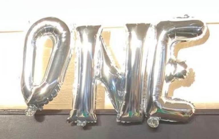 One birthday balloons and banners