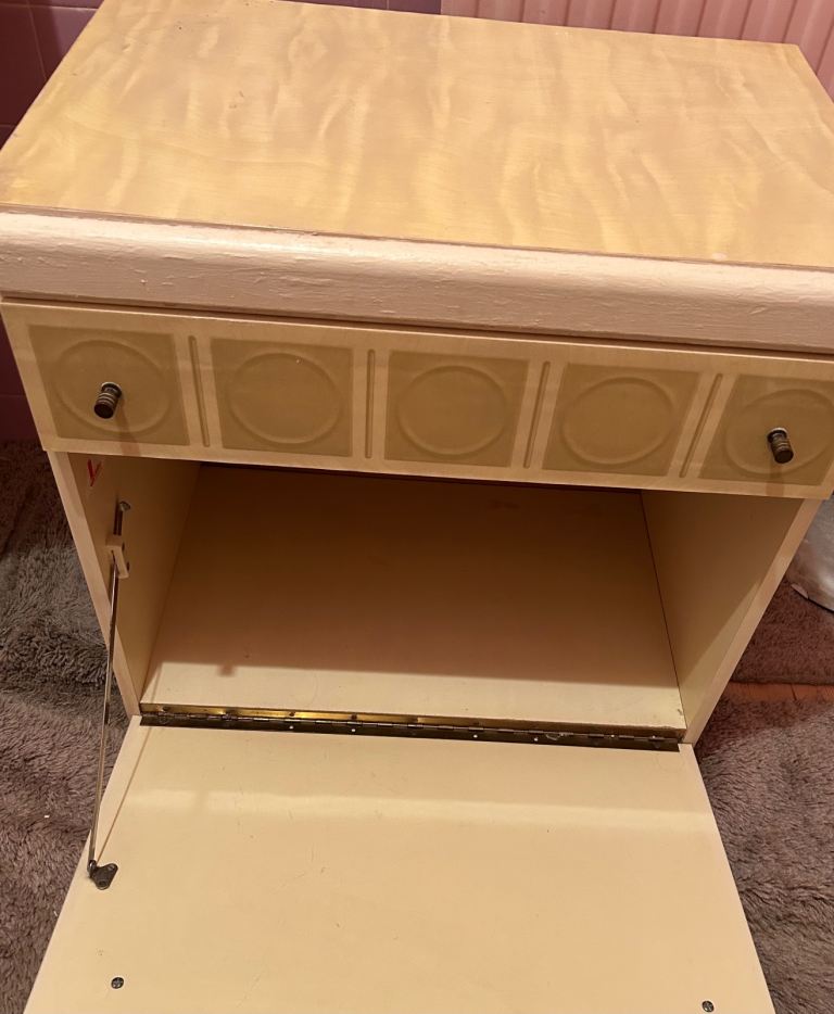 2 side tables with drawer and pull down cupboard collection from Hainault asap