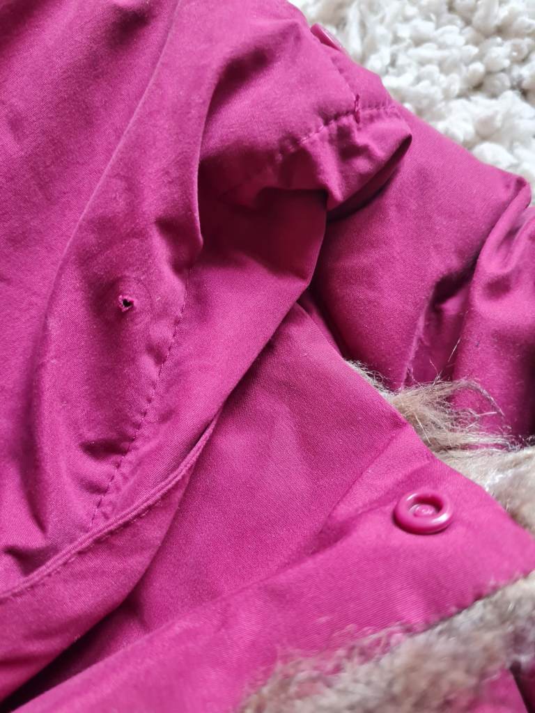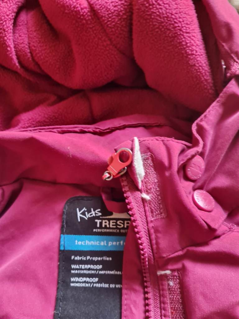 Great Regatta kids coat. Zip has broken - repaired once but stuck again. LO now grown out of it. Ripped pocket. Hood missing a stud to secure it back. But great winter coat