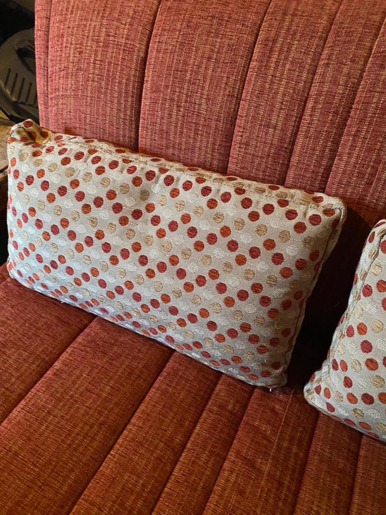 Red cover and coordinated cushions